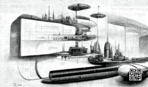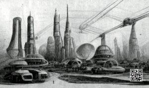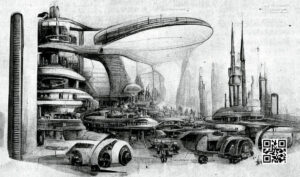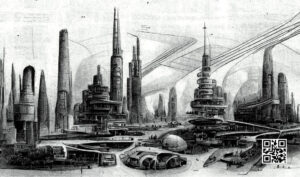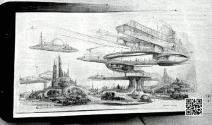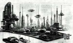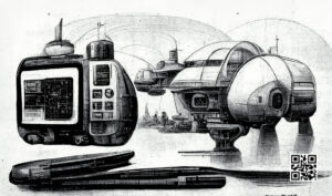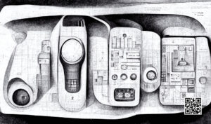 For the backs of the cards, I used the generative AI Art Bot MidJournet to produce a series of images starting with the prompt: “a fine lined black and white pencil sketch of future technologies.”